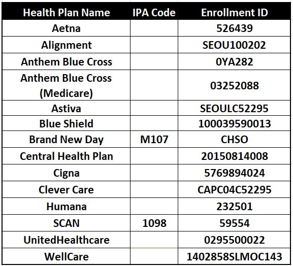 (714) 530-3740 Fax: (714) 530-0582 Health Plan IDs