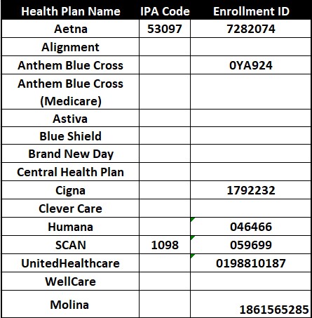 (714) 994-5290 Fax: (714) 782-3592 Health Plan IDs