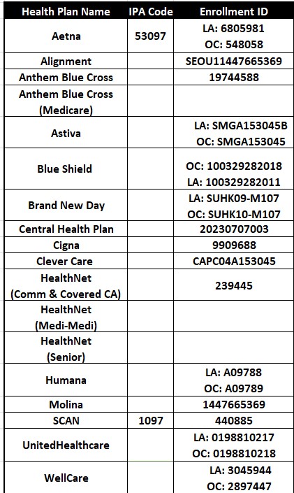 (714) 562-9139 Fax: (213) 769-0007 Health Plan IDs