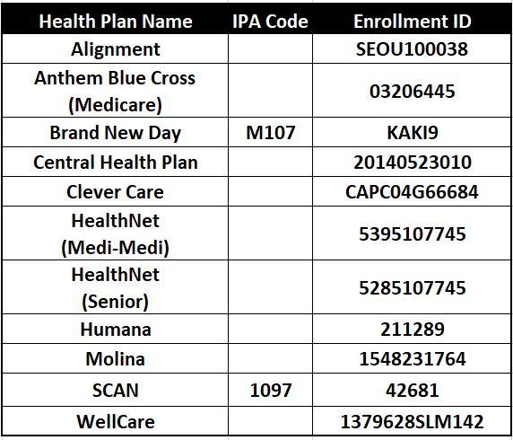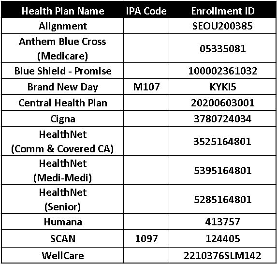 (714) 752-6088 Fax: (714) 439-5499 Health Plan IDs